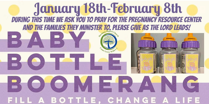 SUNDAY, JANUARY 18th Sanctity of Human Life Sunday. Baby Bottle Boomerang Begins.